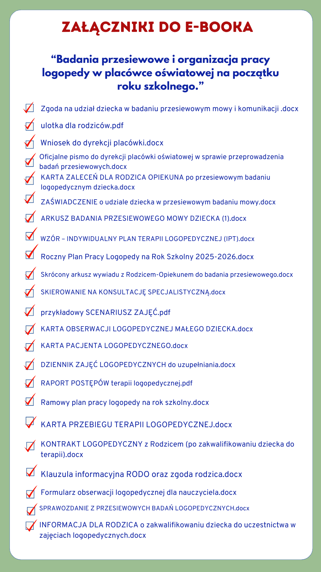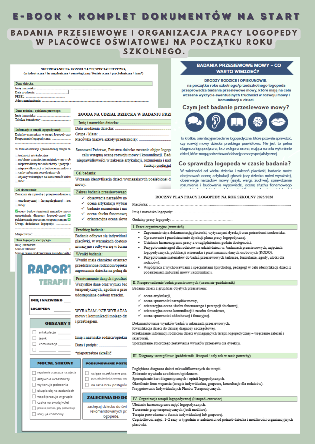 E-book PDF + 24 edytowalne dokumenty logopedy.