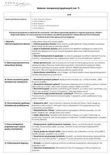 Testy słuchu fonemowego i percepcji słuchowej. Badanie kompetencji językowych.
